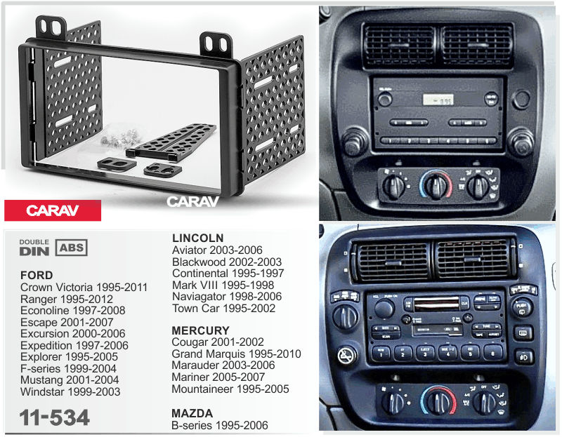 —CARAV 11-534 (2 DIN FORD Crown Victoria 1995-2011, Ranger 1995-2012; Econoline 1997-2008; Escape 2001-2007; Excursion 2000-2006, 173 x 98 mm)